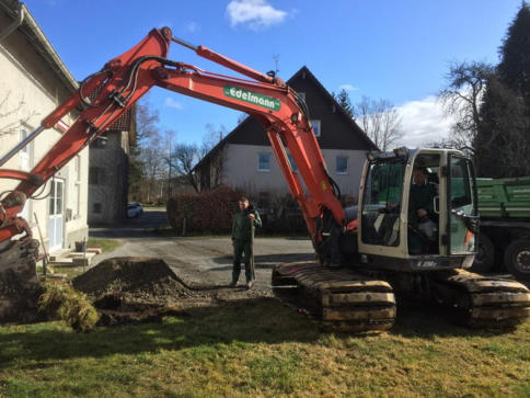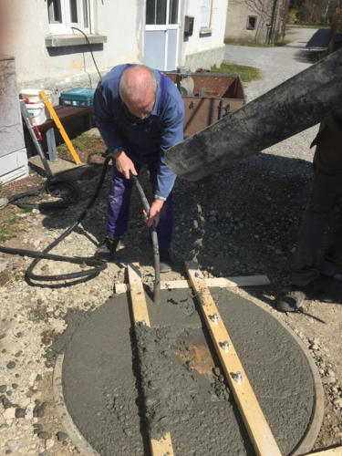 Armin den Transport und mit Hermann die Grundmauern errichtet.