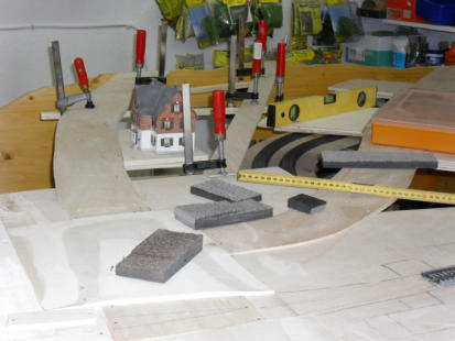 rechten Anlagensegment (Buch) war dank tatkräftiger Unterstützung von Karl-Heinz und Thomas der Gleiswendel fast fertiggestellt.