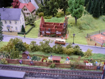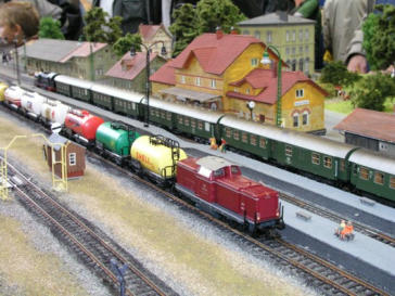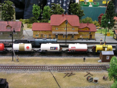 Bauzustand I (2000 - 2004)Im Rahmen der historischen Modelleisenbahnausstellung vom 1.Dezember 2000 bis 8.Januar 2001 sollte in der Badstube Wangen unter Anderem auch eine Eisenbahnanlage zur Geschichte der Eisenbahn in Wangen ausgestellt werden. Wir als Modellbahnverein erhielten daher von der Stadt Wangen den Auftrag, eine 7,0m x 1,5m große H0-Modellbahnanlage zu erstellen, welche die Zeit der Dampflokomotiven im Wangener Bahnhof wiederspiegeln sollte. Dies war bis Anfang der 70er Jahre der Fall.Die Anlage ist in zwei Ebenen aufgebaut, wobei der obere Teil die Gleisanlage des Wangener Bahnhofs darstellt und die beiden Strecken nach Kißlegg und Hergatz in einem Schattenbahnhof in der unteren Ebene enden. Besonders gut gelungen sind dabei die Gebäude von Paul Heinl, er erbaute den Bahnhof, die Güterschuppen und das alte WLZ-Lagerhaus.Nach Ende der Ausstellung ging die Anlage wider Erwarten durch Schenkung der Stadt in den Vereinsbesitz über, und seither wurde die Anlage auf verschiedenen Messen gezeigt.